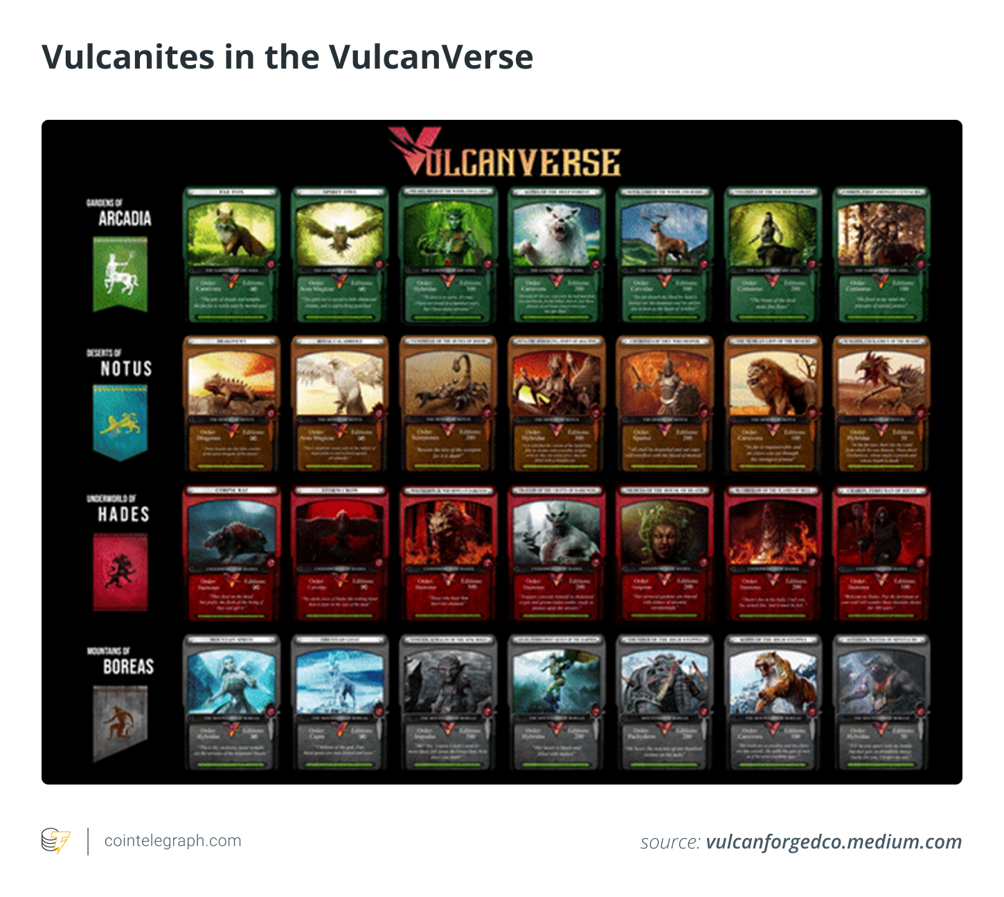 Trò chơi dựa trên thần thoại Hy Lạp và La Mã. Đất, Thần, Vật phẩm và Vulcanites là những tài sản chính cần sở hữu trong VulcanVerse. Các vị thần ban tặng cho người chơi khả năng bị động để cải thiện các chỉ số như tốc độ và tấn công. Các vật phẩm khác trong trò chơi cũng bổ sung thêm tiện ích, cung cấp cho người chơi những phép thuật tạm thời kích hoạt các sức mạnh đặc biệt khác nhau.